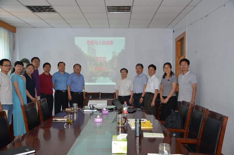 如同到家一般,自然大方,极具学者风范。周教授报告内容丰富,包括柑桔的营养和活性成分;柑桔与人体健康的研究;柑桔果品的科学利用和柑桔果品与运动营养和保健等等。周教授先简略而生动讲述了柑桔历史,而后详细解说对柑桔果品营养学的研究,包括柑桔的抗氧化作用、抗衰老作用和与人体疾病防御等。周教授讲授方式幽默,报告内容深入浅出,即讲出了科学研究的精髓,又便于学生理解,整个过程掌声不断。