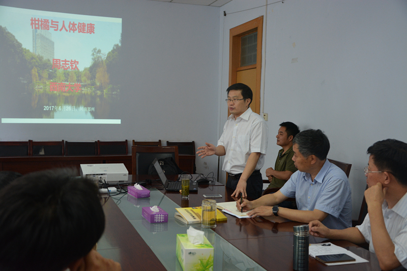 周志钦教授在一片掌声中开始以“柑桔和人体健康”为主题的学术报告。周教授多年来一直从事柑桔方面的研究,来到肉番